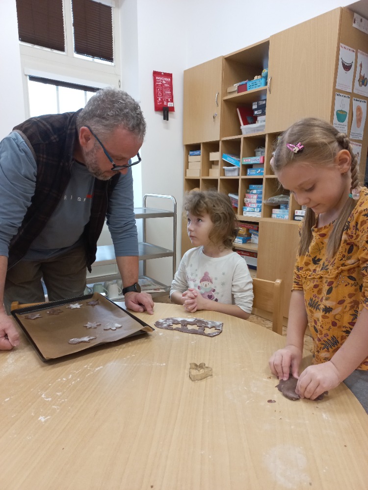 Ve Specince se pomalu začínáme připravovat na blížící se adventní období, a tak jsme se 11. a 12. listopadu ve třídách pustili do pečení perníčků. Děti si samy nebo s dopomocí dospělých vyzkoušely moučení pracovní plochy, válení těsta a vykrajování. Krásné perníčky nám upekly naše milé paní kuchařky, zdobit polevami je budeme na příští dílně s rodiči, která se koná ve středu 19. listopadu od 15 hodin.