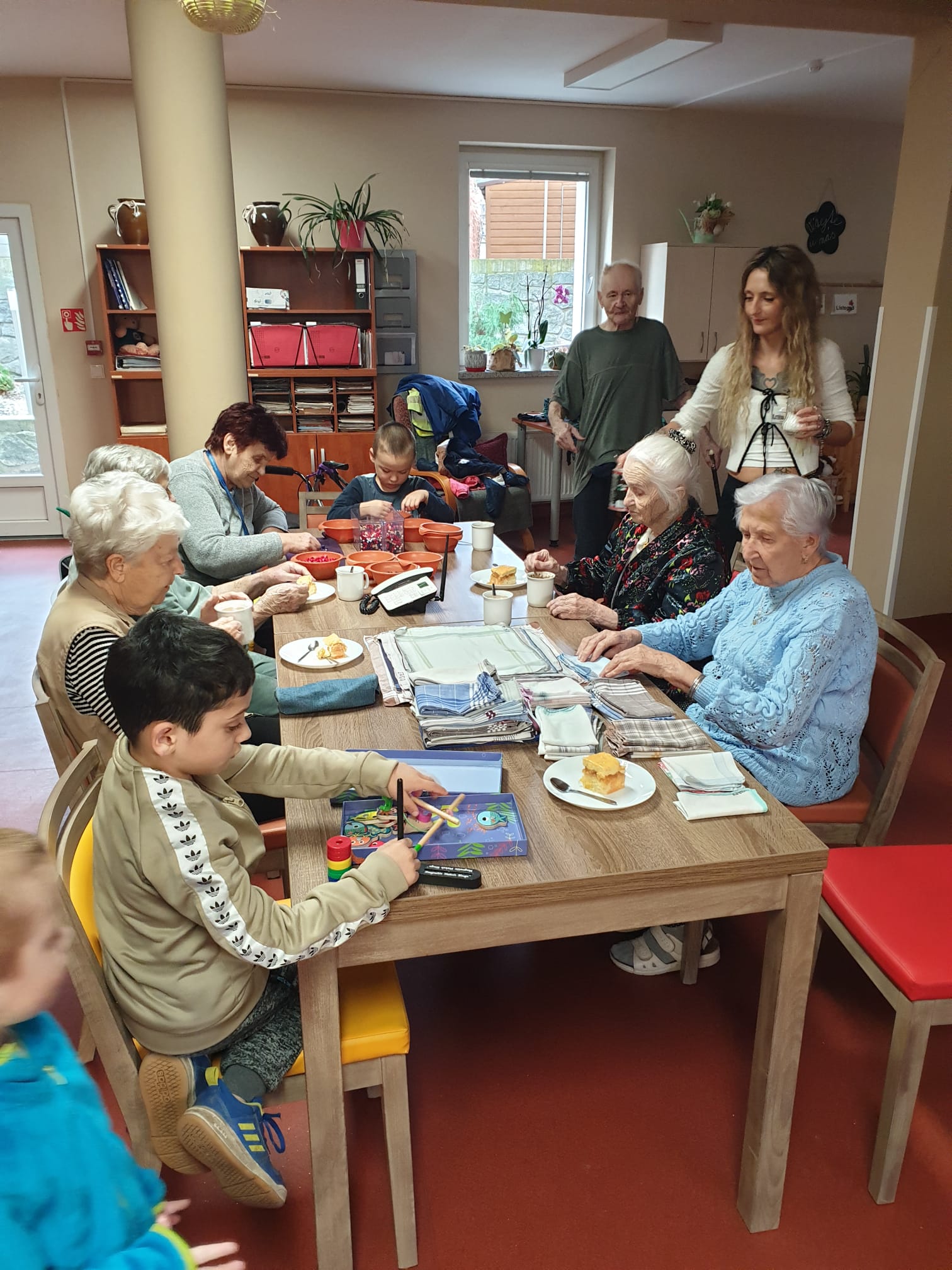Ve čtvrtek 21. listopadu jsme jako každý měsíc navštívili babičky a dědečky v místním domovu pro seniory. Přidáváme se ke společné ergoterapii, která probíhá v rámci odpoledních zájmových činností. Popovídali jsme si, procvičili prstíky a dali si něco dobrého k snědku. Děkujeme za umožnění další krásné návštěvy a těšíme se na další návštěvu, příště již v adventním čase.