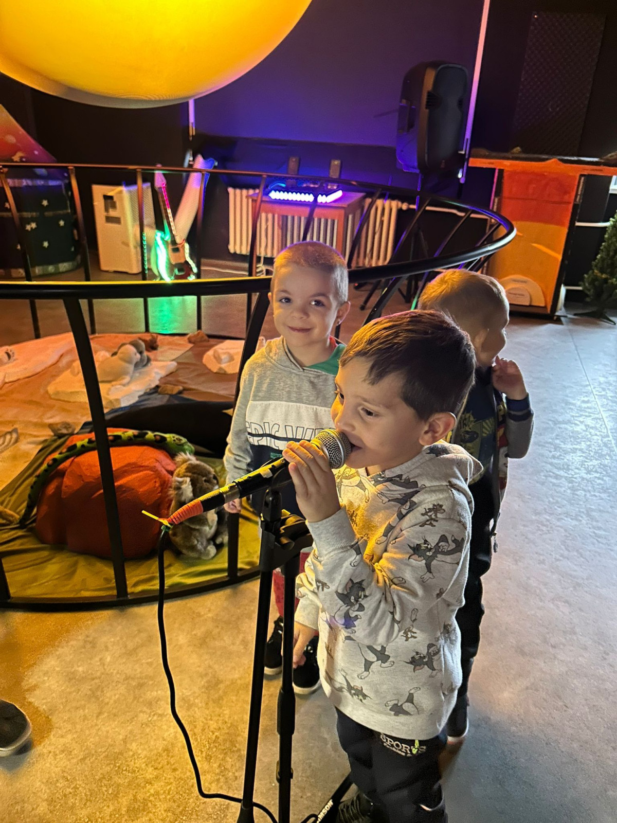 Ve čtvrtek 20. listopadu jsme navštívili místní Přírodovědné centrum v Žatci. Tentokrát nás čekala projekce cesty z náměstí Svobody až na měsíc a zpět a zhlédli jsme promítání pohádky o vesmíru, kterou nás doprovázela lesní zvířátka. Ve vědě na kouli byla připravena zábavná interaktivní přednášku o zvuku s názvem Zvukohrátky, kde děti poznávaly zvuky zvířat, hudebních nástrojů, přírodních jevů a měly možnost si zazpívat do mikrofonu, vyzkoušet si mixážní pult a dotykovou bicí soustavu. Mnohokrát děkujeme za další krásné dopoledne a těšíme se na příště!