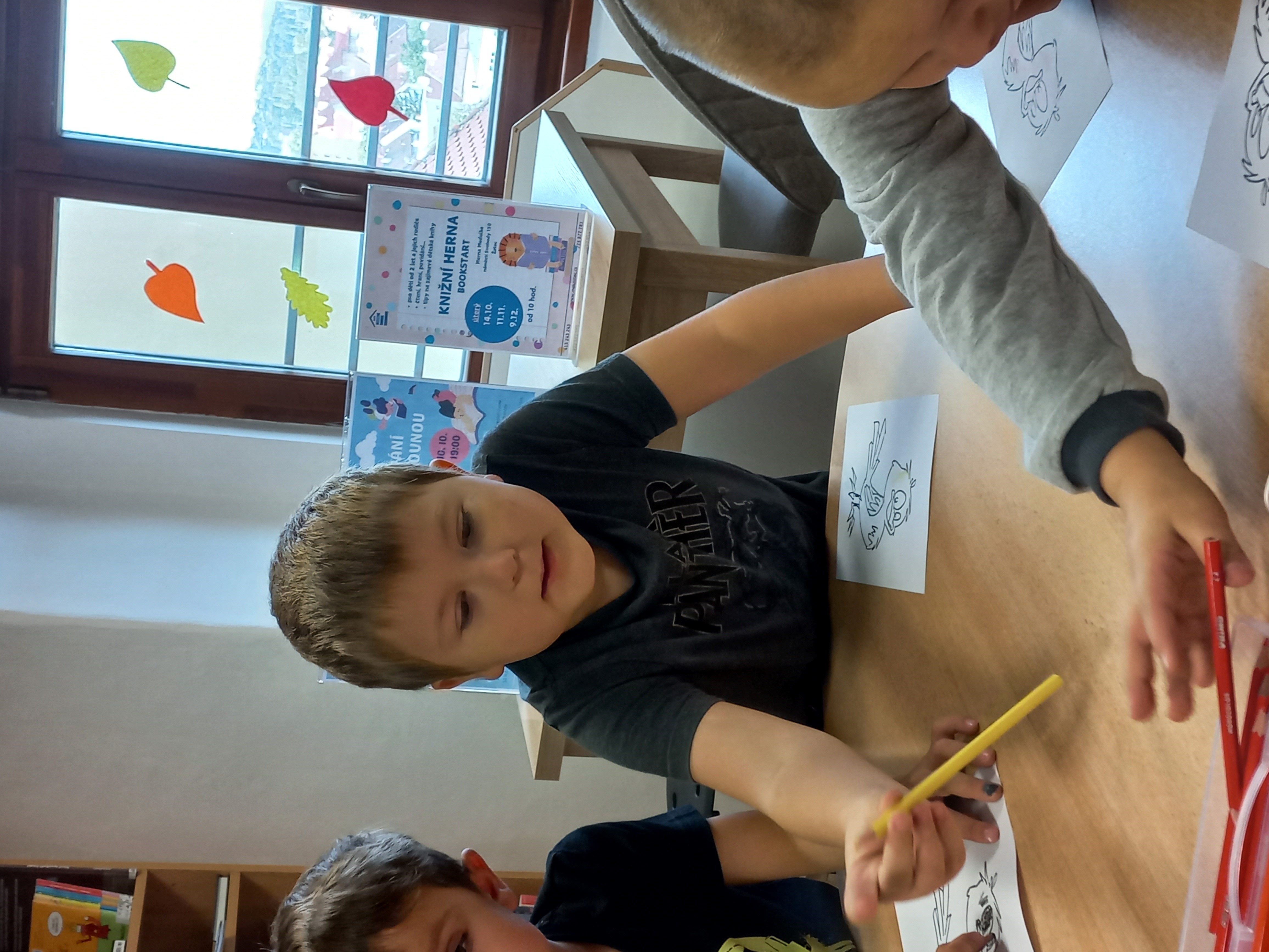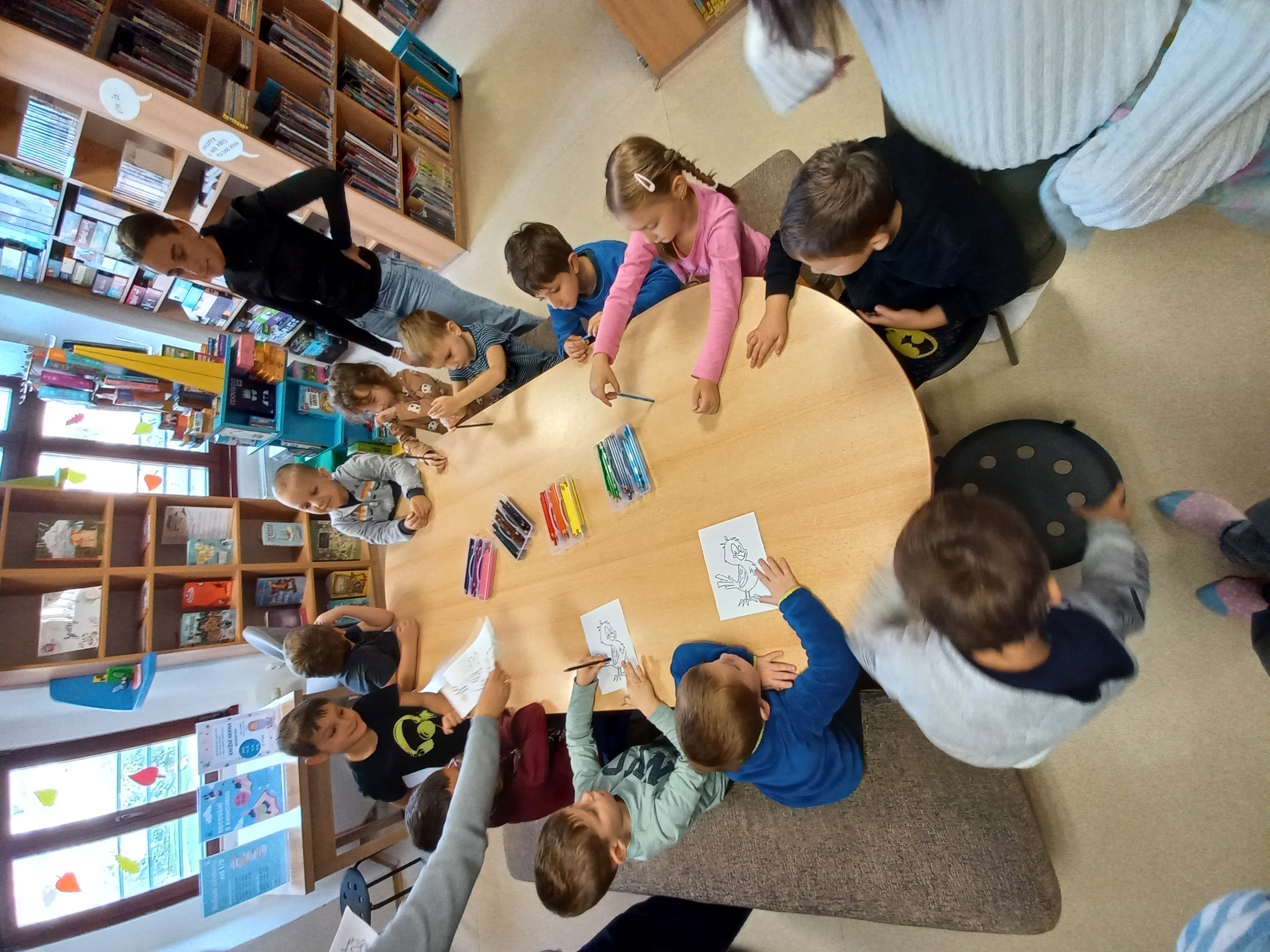 V pondělí 6. října jsme se vydali na lekci pro předškoláčky do hlavní pobočky Městské knihovny. Děti vyslechly příběh o špačku Kamilovi, který neuměl létat. Splnily několik zajímavých úkolů a nakonec si Kamila vybarvily. V knihovně se všem velice líbilo, děkujeme za spolupráci a těsíme se na příští lekci.