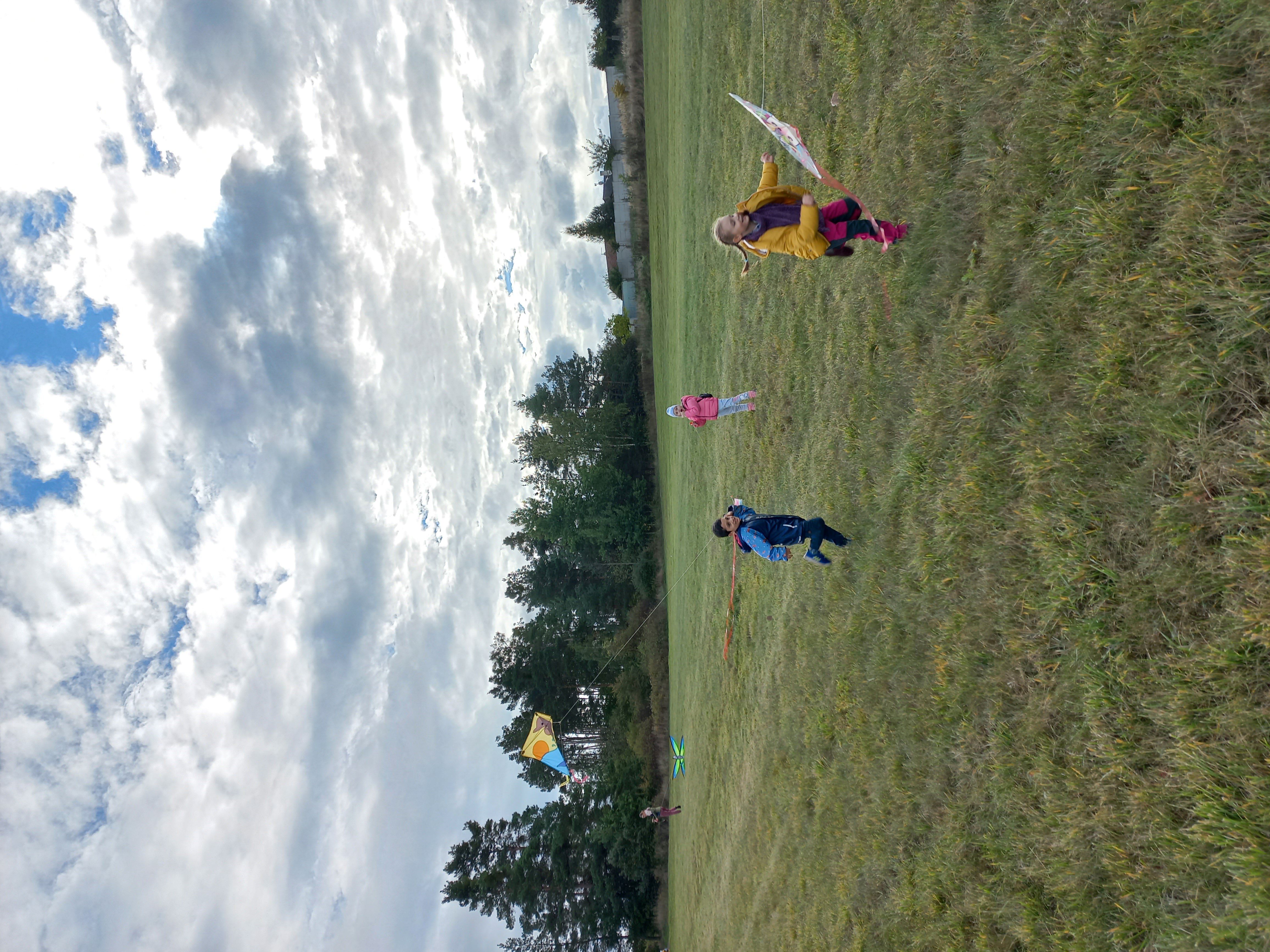 Ve čtvrtek 9. října jsme se vypravili vlakem na houby a pouštet draky. Počasí nám přálo a pobyt v přírodě v blízkém okolí Vroutku se líbil dětem i dospělým. Děti si vyzkoušely různé lesní průlezky, hledaly houby a pochutnávaly si na svačinkách z batůžků na každé lesní zastávce. Nakonec jsme na louce pouštěli draky, slabému větru jsme pomohli rozeběhem. Podzimní výlet do přírody se nám velmi vydařil.